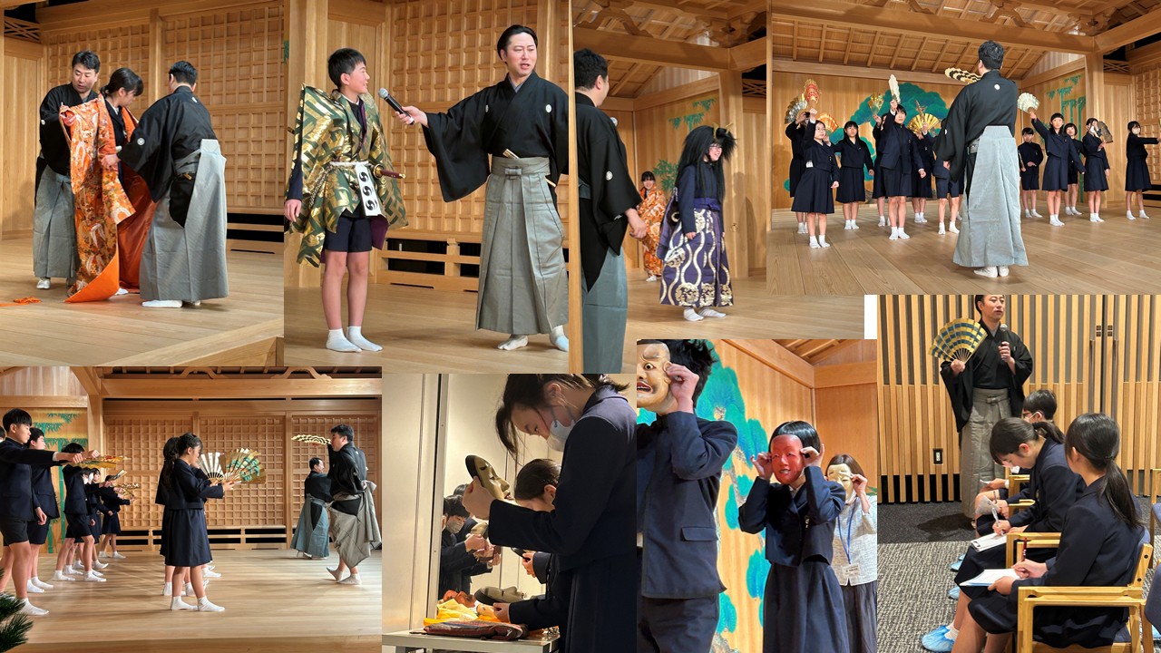 卒業を控えた6年生が,能楽を体験をし本物の能に接することで,日本の伝統芸能と歴史への理解を深める。また講師の先生方との交流を通して,生き方や考え方に触れる。
